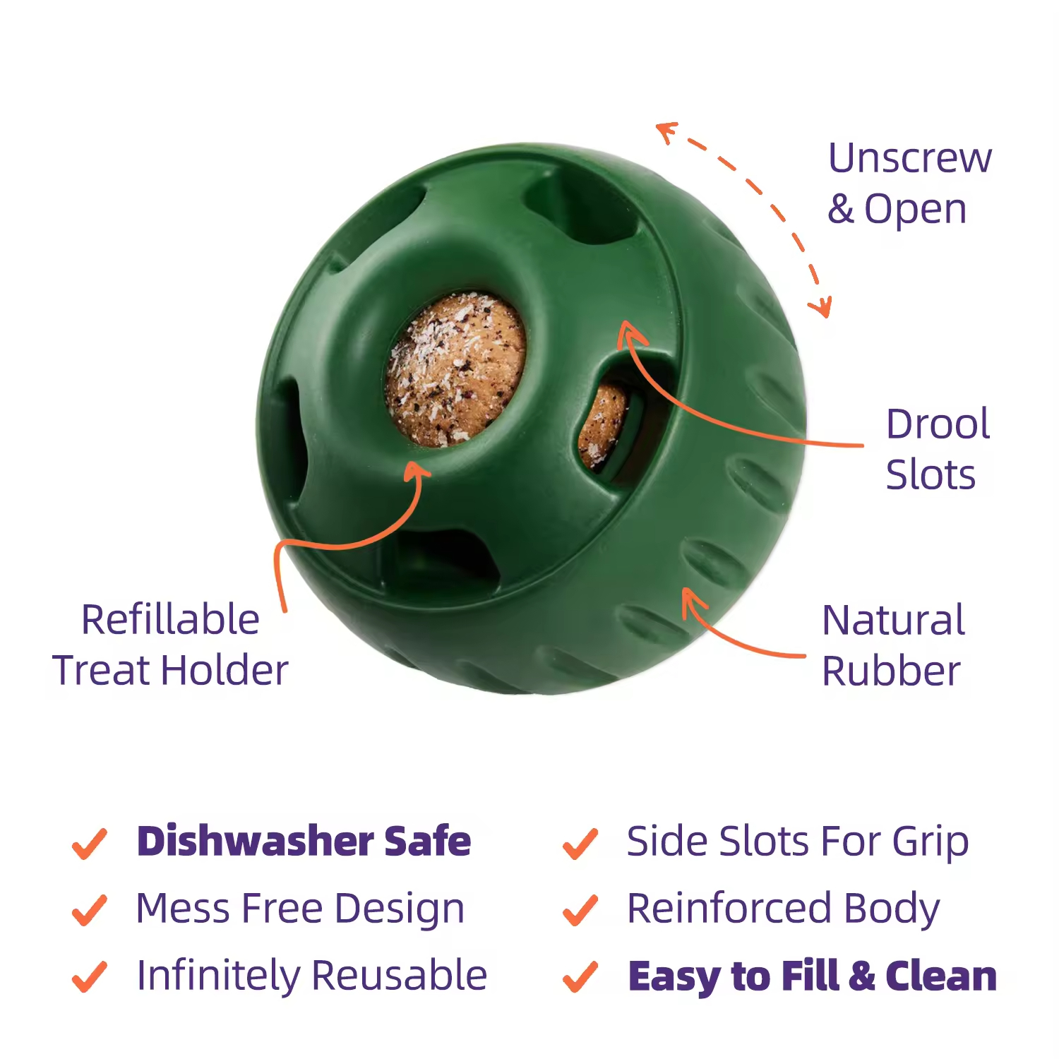 Refillable Core: Use your dog’s regular kibble or treats – no proprietary refills needed