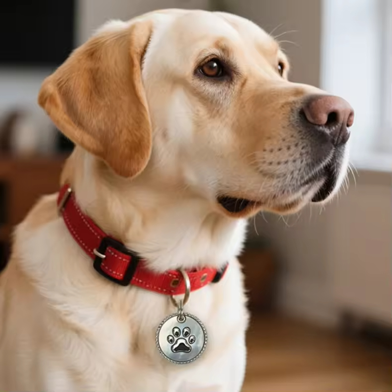 Engrave your pet’s name and your phone number on the front. The perfect blend of style and essential info. -